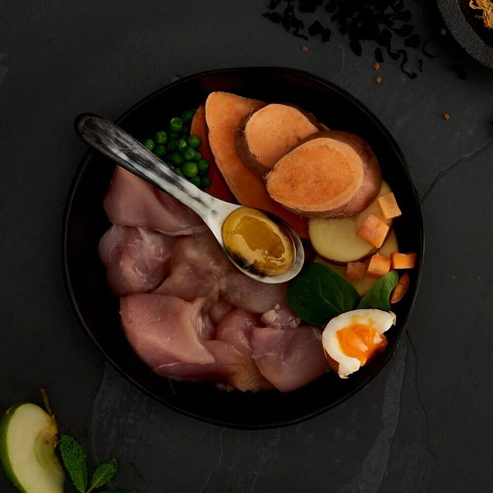 無穀物狗糧,採用新鮮準備的鴨肉、鹿肉和兔肉以及特別挑選的蔬菜和植物精製而成,可激發您的狗的味蕾並與其祖先的飲食相匹配。