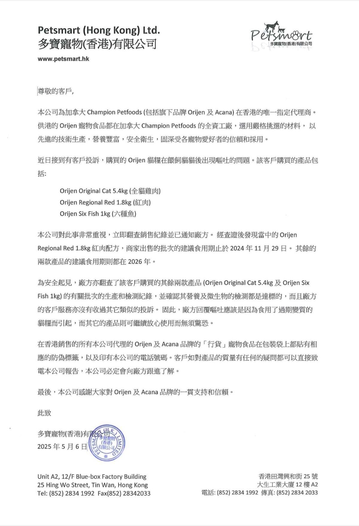 請注意 Orijen的寵物食品,包括 5.4公斤裝, 6公斤裝, 11.4公斤裝等,都不是真空包裝的。所以,本店鋪並不接受以不是真空包裝為由要求退貨/退款。