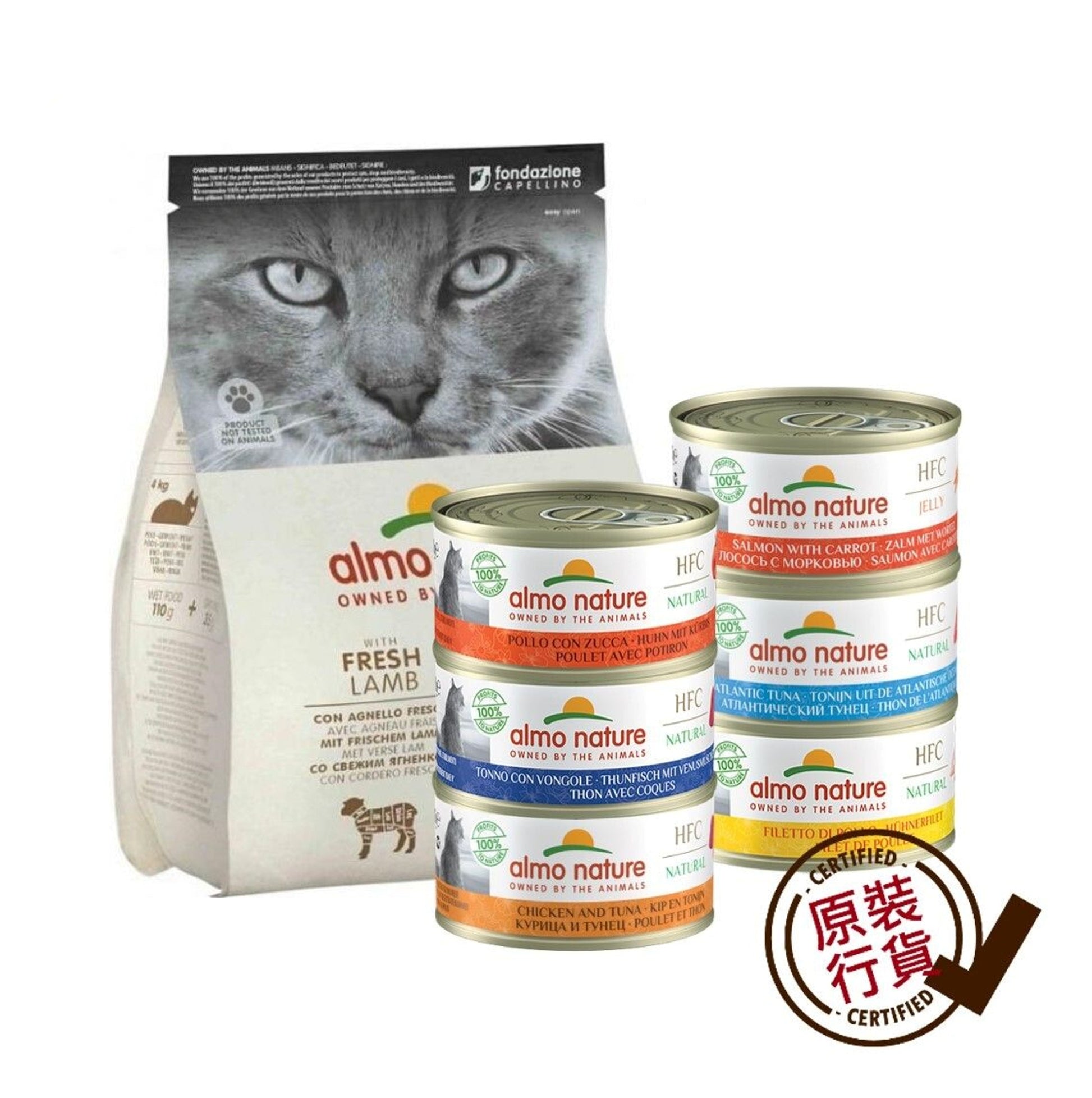 [雜錦套裝]腸胃護理羊肉成貓配方貓糧 400克 #664 (包裝隨機提供) 配 HFC系列貓罐頭雜錦套裝