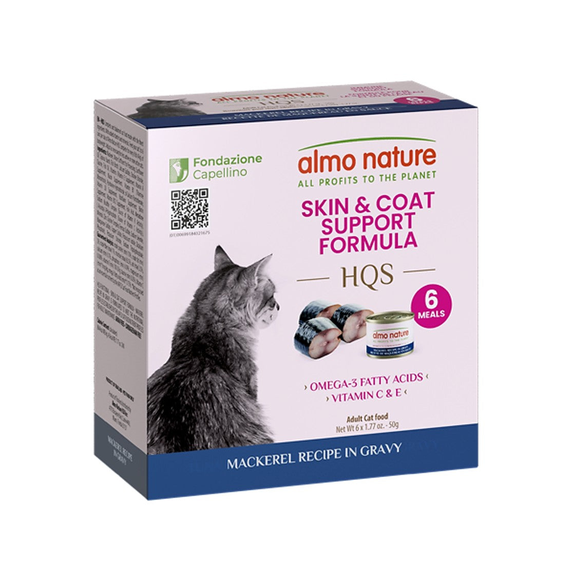 Almo Nature 皮膚毛髮滋養 - 肉汁鯖魚配方是一款營養均衡的濕糧,旨在從內到外滋養您的愛貓,促進內在健康和外在光澤。