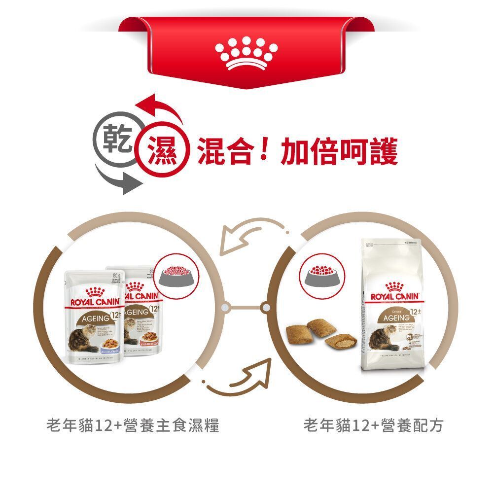 專為12歲以上高齡貓設計,濃郁肉汁配方提升適口性,支持腎臟、關節與整體健康。