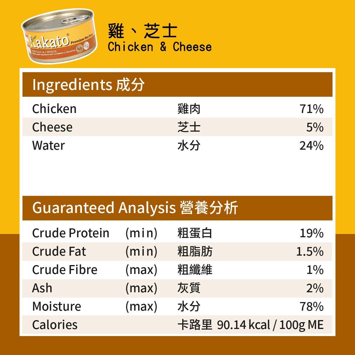 Kakato-高級寵物食品 貓狗罐 雞、芝士 170克 #826