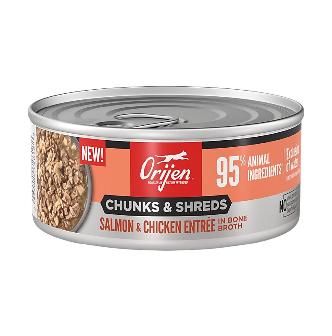 ORIJEN™ 奢華鮮肉濕貓糧是一款營養豐富的貓糧,採用 WholePrey 的動物性食材和美味的骨湯製成,為您的愛貓補充水分。這款方便的混合糧包含兩種不同的動物性食材(三文魚和雞肉),是一頓美味且符合生物學原理的餐點。