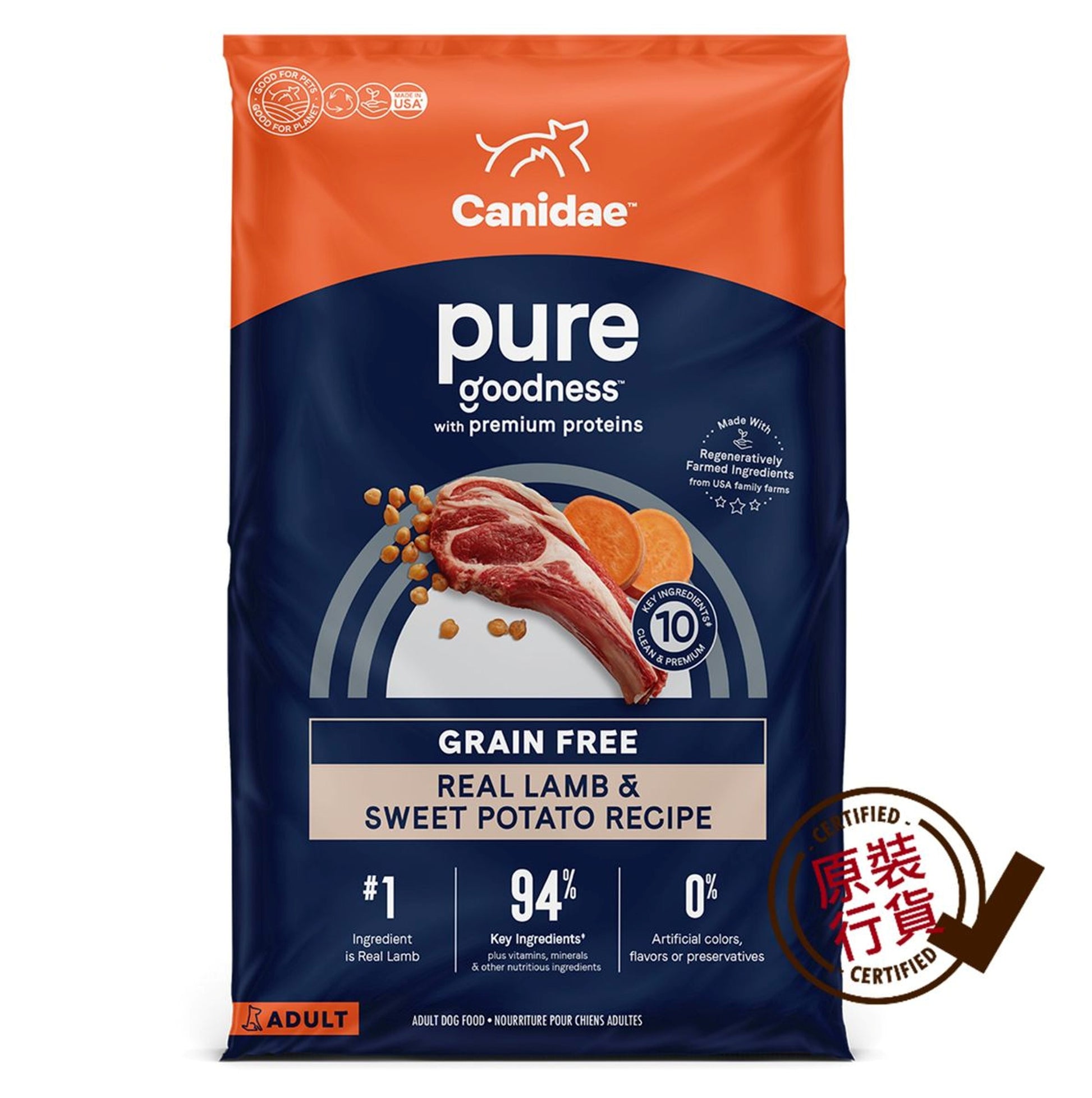 PURE 成犬乾糧 - 無穀物羊肉和甜薯 1.8KG(4磅)
